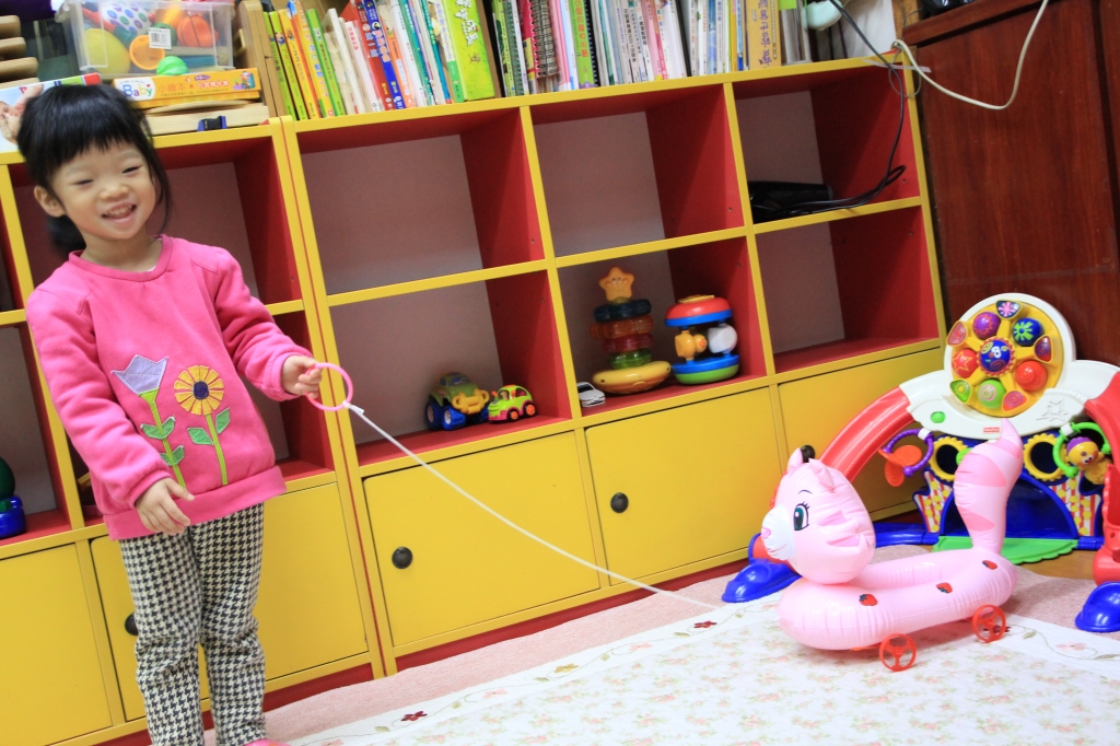 會主動想幫妹妹穿鞋子,雖然穿不好,不過很棒了