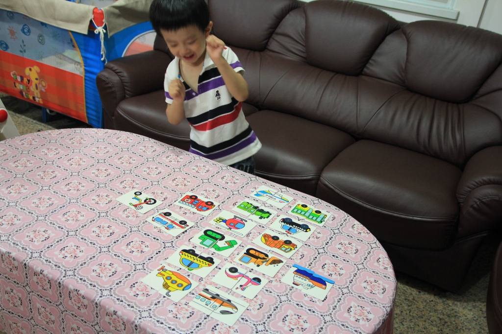 豪豪把配對卡配對完成時高興的表情